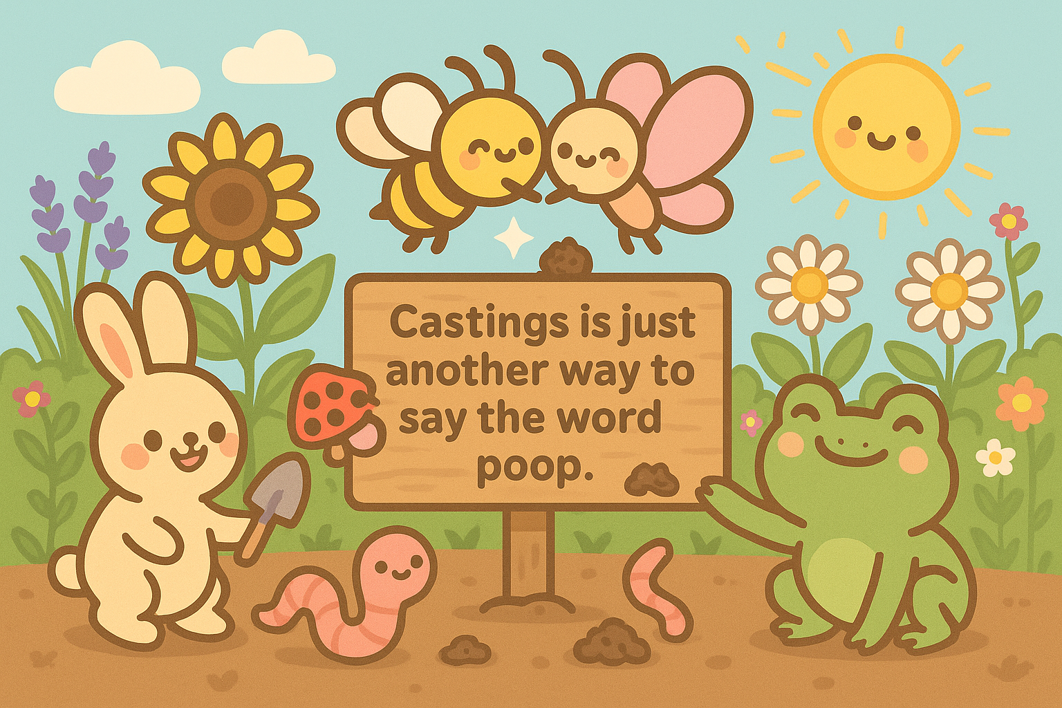 When earthworms eat old leaves and soil, they leave behind little poops called castings β and guess what? Those castings are packed with nutrients that help plants grow strong and healthy. You can buy this online. Bags of tiny poop!