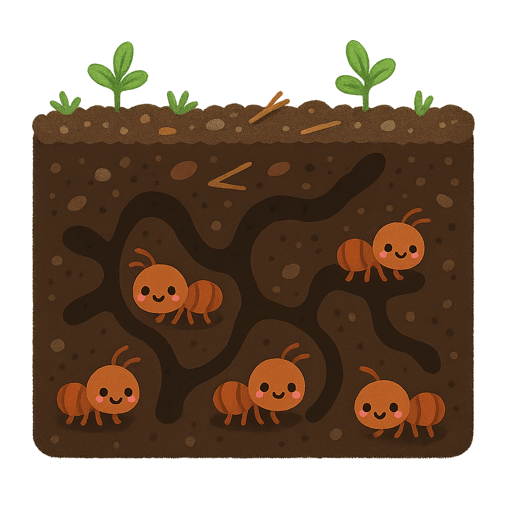 Good garden soil isnβt just dirt β itβs a living mix of tiny critters like ants, tiny bugs and organic matter. It's like a busy underground city that helps plants grow.